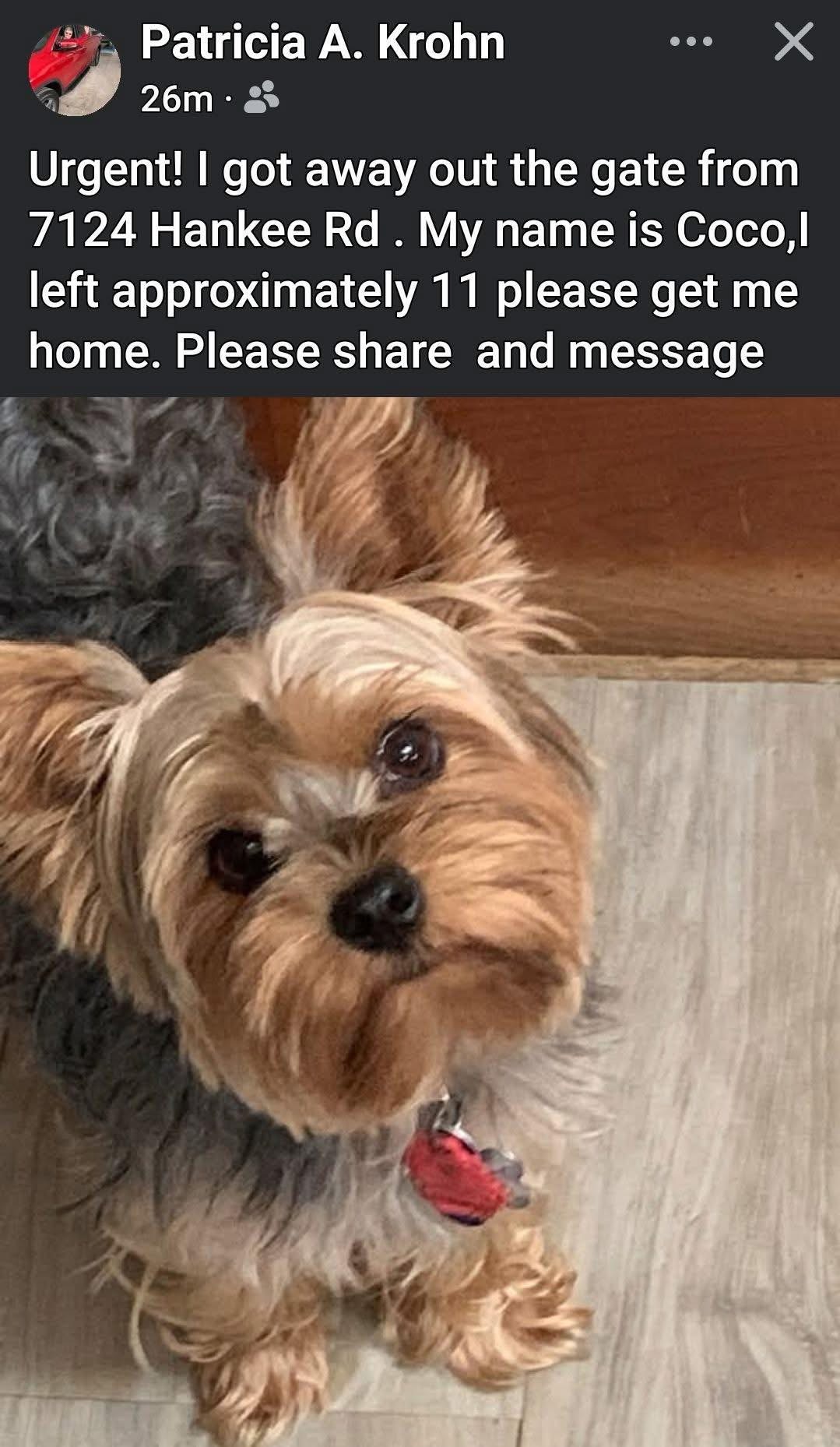 | LF-15237650 | 12/04/2025 | Lost | Dog | Brown | Recently groomed | Coco | Brow and black wearing a collar and tags | ![]() | (330) 671-6702 |