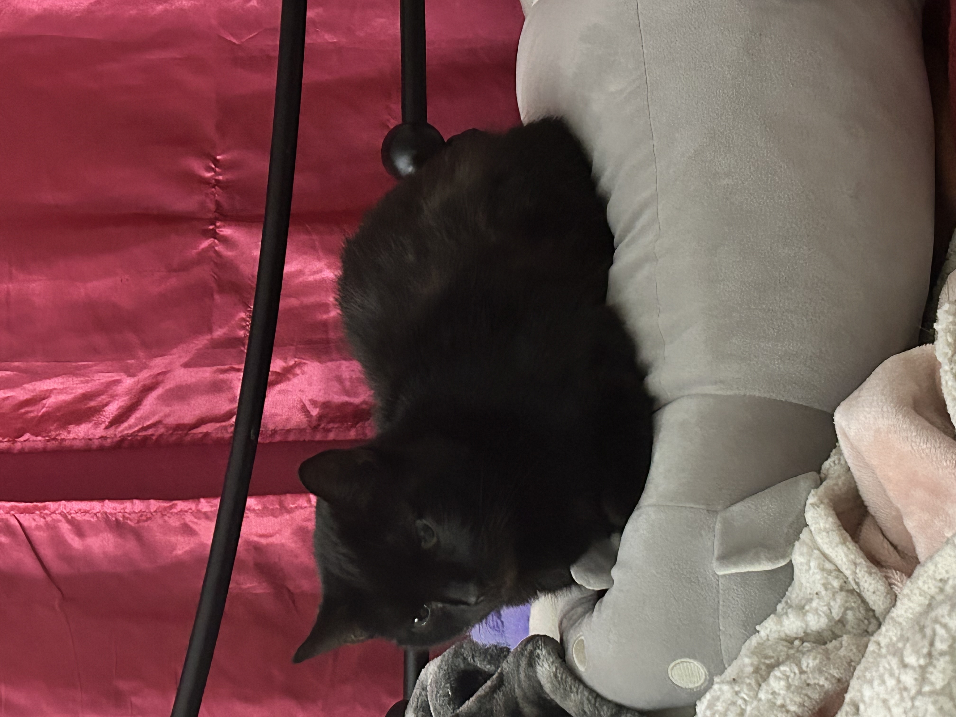 | Location the Pet was Lost/Found and Description of the Pet | He is a black cat with green eyes and a bit of fur missing on his backside |
